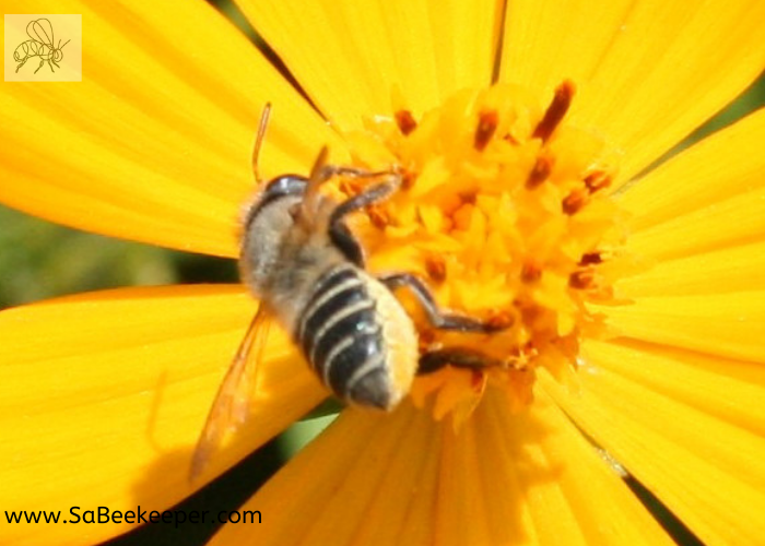 The bee is not social like the honey bee, and does not sting unless its handled or squashed.